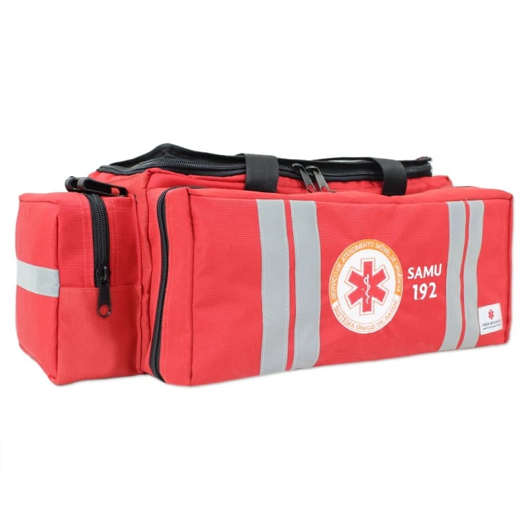 A bolsa de atendimento pré-hospitalar possui logotipo do Samu e foi desenvolvida para auxiliar e facilitar o trabalho dos socorristas. É impermeável e resistente, podendo ser utilizada em diversos procedimentos de resgate e salvamento. Possui diversos bolsos e compartimentos para guardar os instrumentos necessários nos atendimentos.
