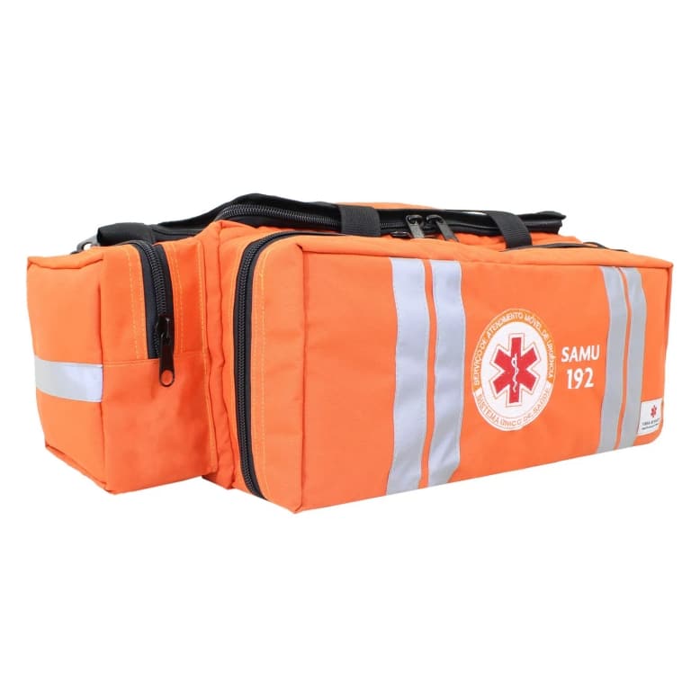 A bolsa de atendimento pré-hospitalar possui logotipo do Samu e foi desenvolvida para auxiliar e facilitar o trabalho dos socorristas. É impermeável e resistente, podendo ser utilizada em diversos procedimentos de resgate e salvamento. Possui diversos bolsos e compartimentos para guardar os instrumentos necessários nos atendimentos.