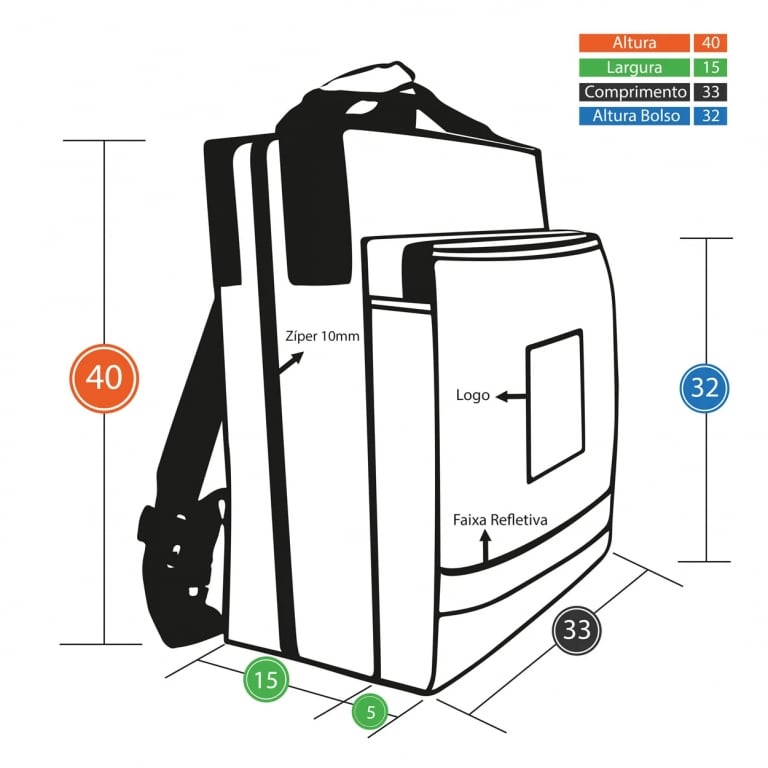 – Alça tipo mochila para as costas e outra para as mãos, ambas com proteção.