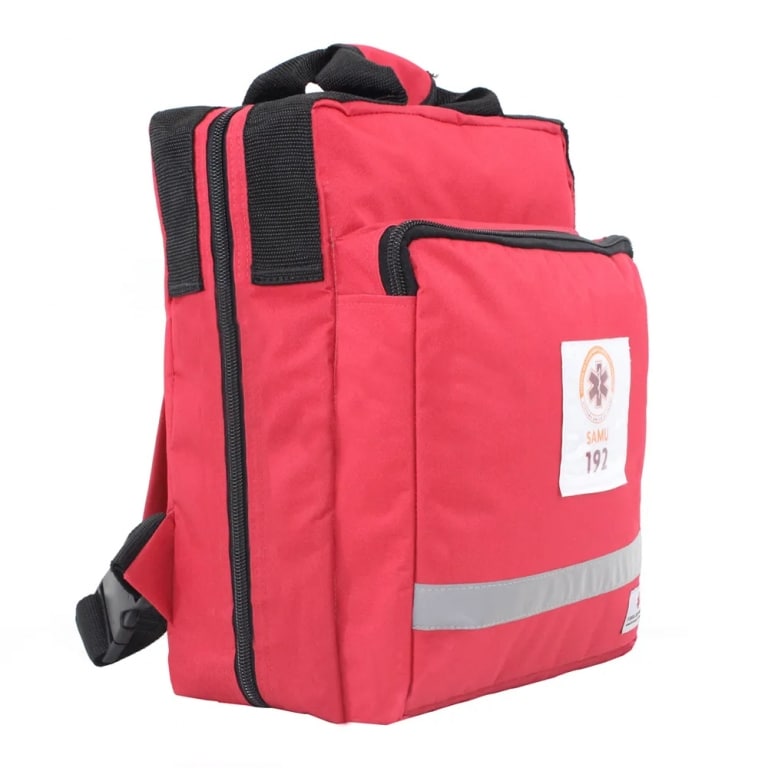 A bolsa mochila foi desenvolvida para auxiliar e facilitar o trabalho dos socorristas. Possui logotipo do Samu e é indicada para transportar itens utilizado em atendimentos de resgate e salvamento. Com divisórias e elásticos para fixação em seu interior.