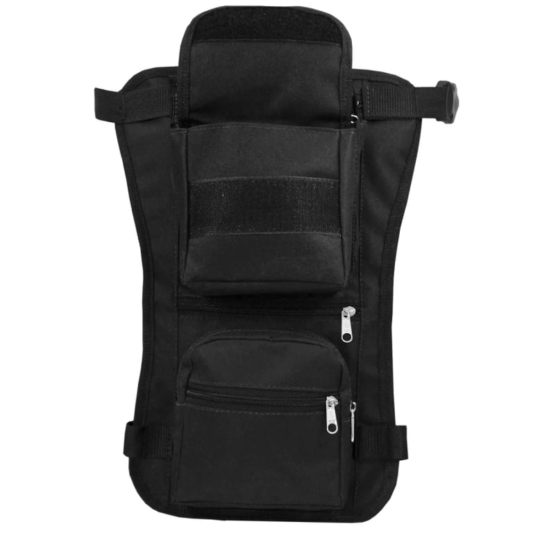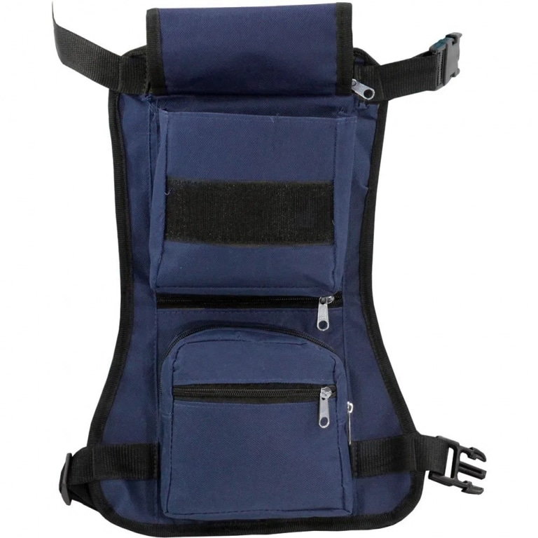 – Possui um bolso com fechamento em velcro e quatro em zíperes.